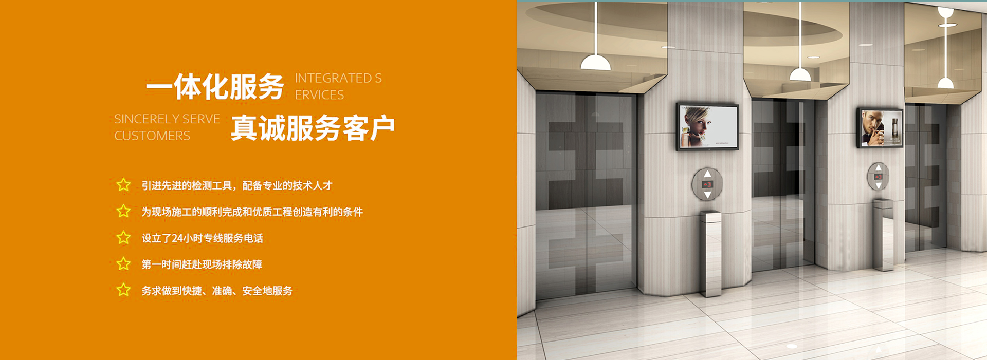 公司有一支專業、誠信的管理隊伍,負責各項目的策劃、組織、計劃、實施、監督、檢查、考核、統計、改進工作;有一支掌握專業電梯技術、實力雄厚的工程隊伍,負責向客戶提供優質、快捷的工程服務。
